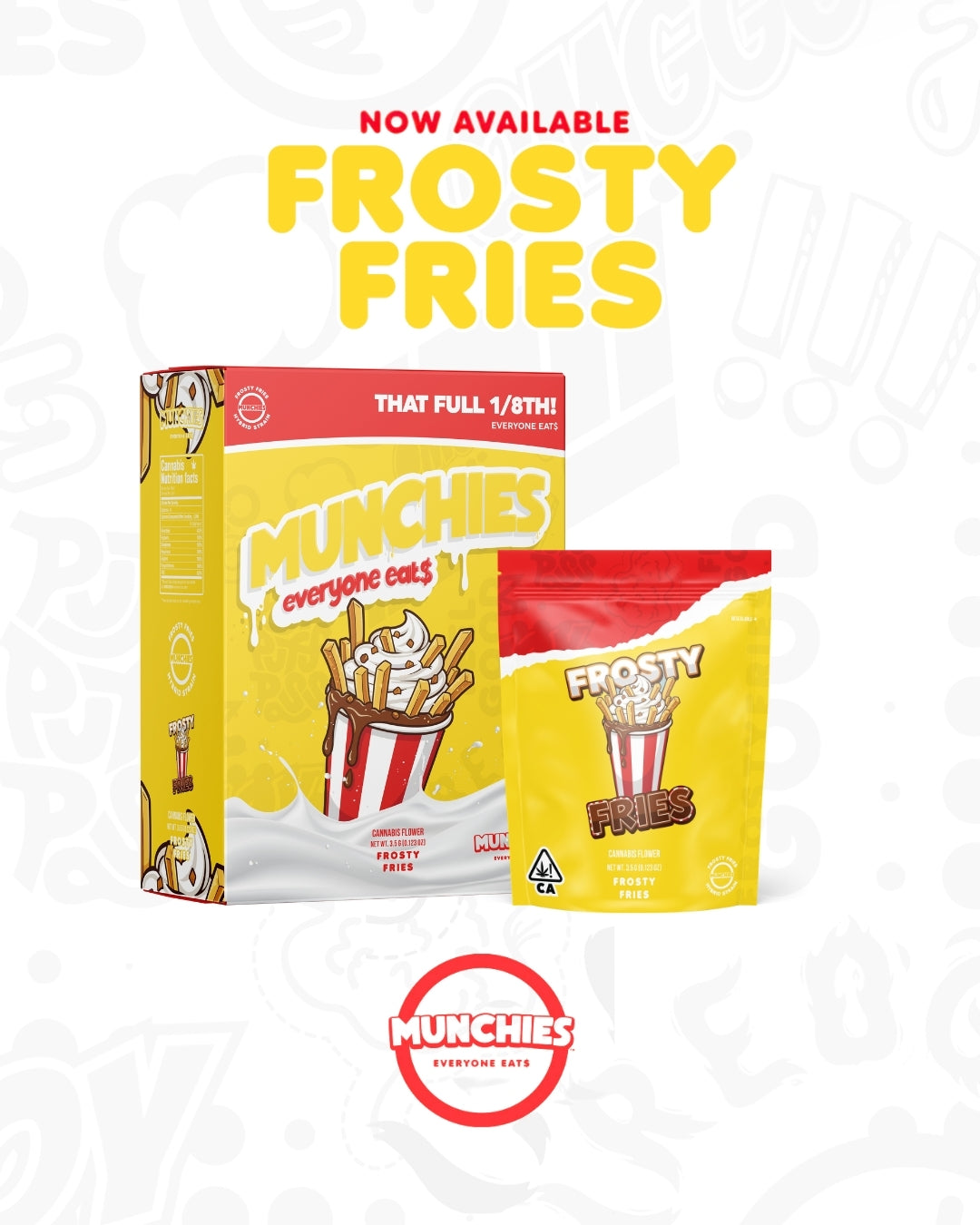 Munchies Frosty Fries crossbred hybrid is the perfect head high perfect anytime day or night. The buds are white with crystal resin, and offer a warning of the potent effects to come. Upon toking, the sweet, spicy undertones give way to an earthy taste with hints of citrus.