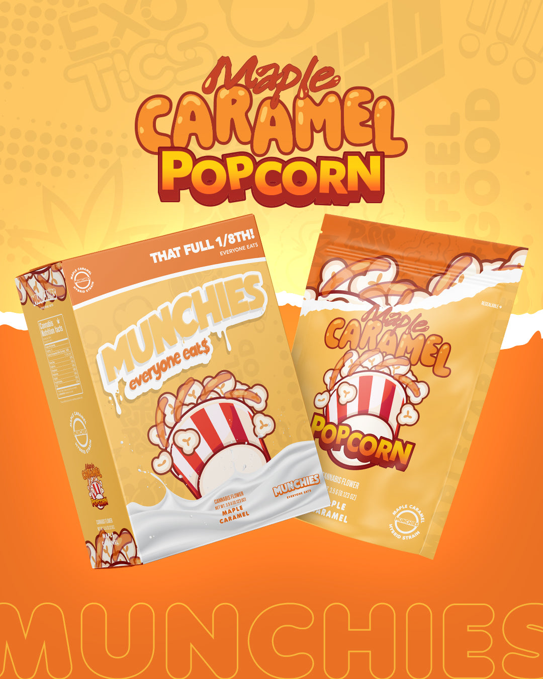 Maple Caramel Popcorn hits with a burst of rich flavor and a vibe to match—warm, uplifting, and just a little wild. It’s the kind of strain that puts a grin on your face while keeping your body at ease and your energy flowing