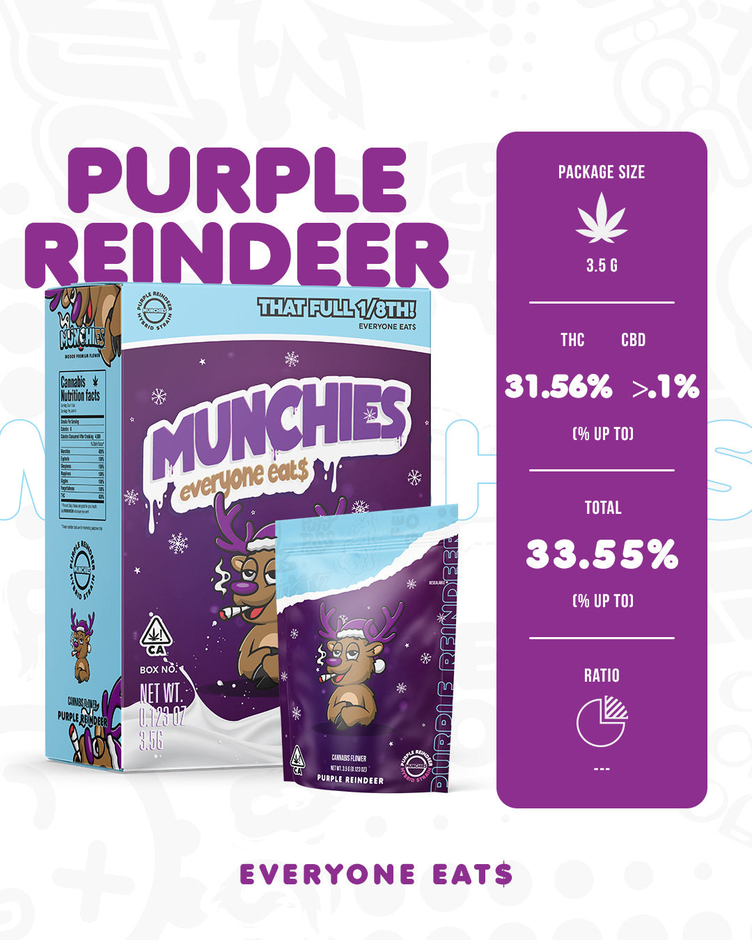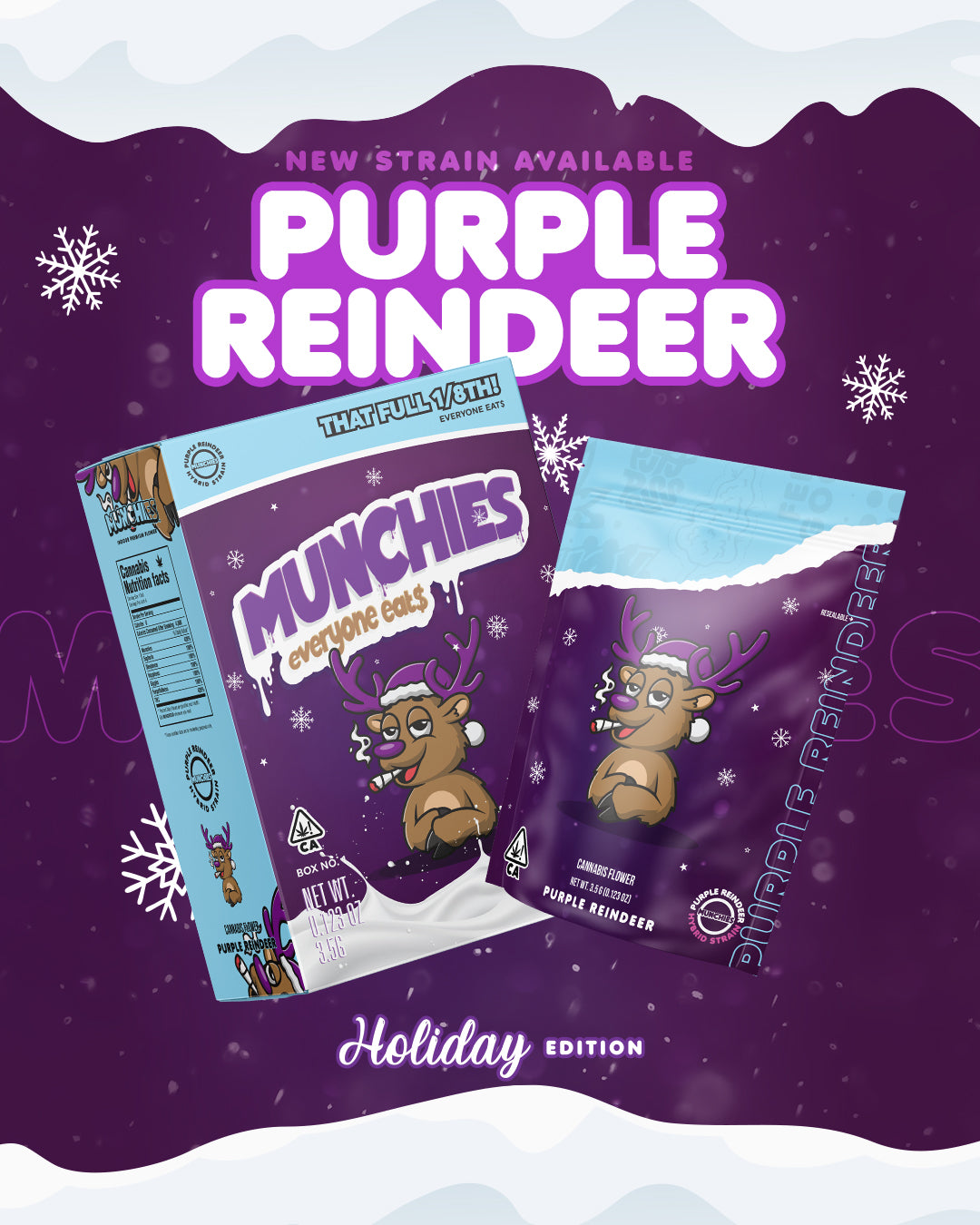 Santa may be the one in charge of delivering the gifts under the tree, but Munchies is the one growing the REAL trees! Get your lighters ready this holiday season with a new potent hybrid strain… Purple Reindeer.